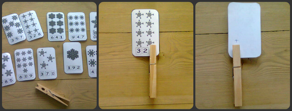 Vienā no attēliem čipšus esmu uzlikusi uz skaitļu kartītes, tas var bērnam palīdzēt vēl labāk saprast, cik sniega “bumbas” viņš drīkst paņemt.