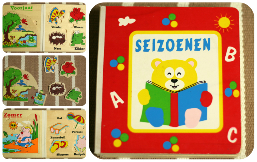 Omama Ligita no Nīderlandes atveda šo koka grāmatiņu – puzli. Katram gadalaikam tajā ir savs atvērums un puzles.