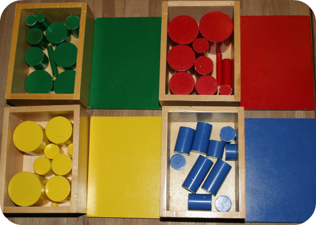 P.S. Attēlā ir redzams klasiskais Montessori materiāls “Krāsainie cilindri”.