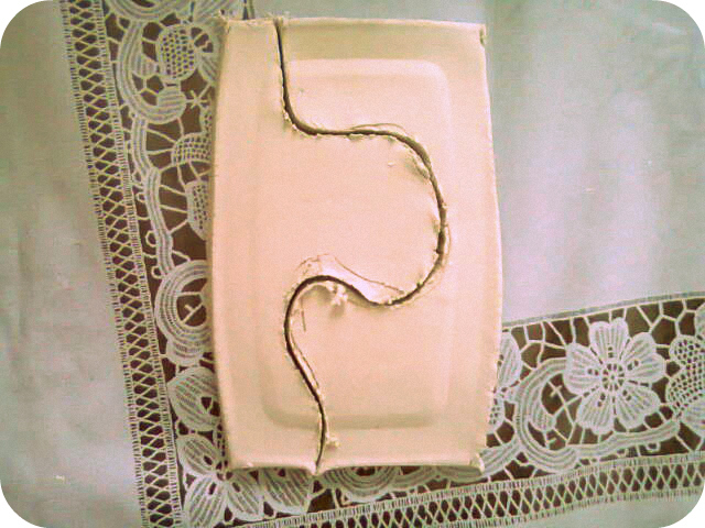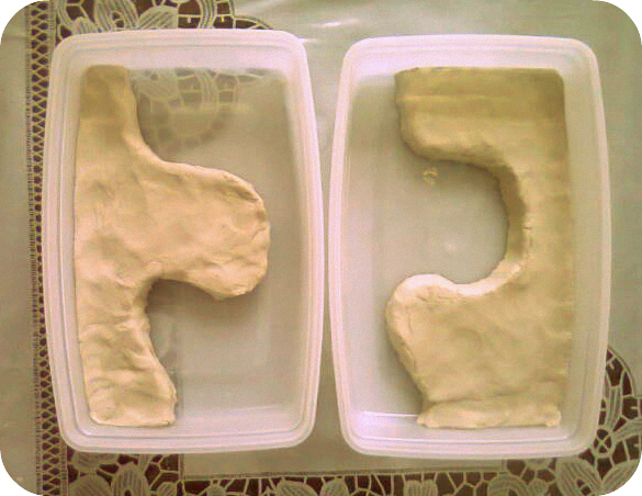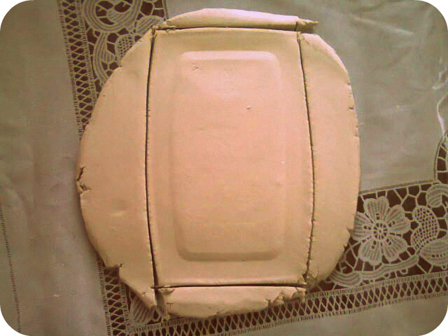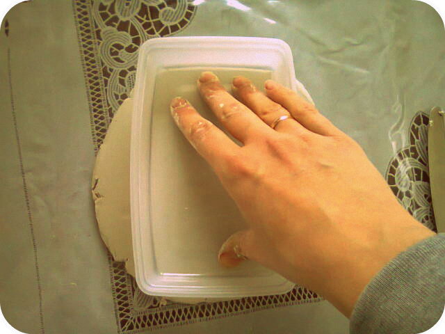 Izrulēju veidošanas masu (~1,5cm biezumā) un, uzliekot trauciņu, izmērīju cik liels taisnstūris būtu nepieciešams.