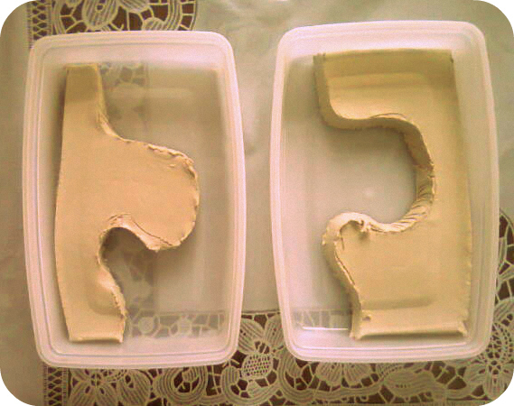 Formām ļāvu nepilnas trīs dienas žūt un sacietēt. Pēc tam tās krāsoju ar brūnu akrila krāsu. Kad krāsa bija nožuvusi, tad ar superlīmi tās ielīmēju trauciņos. Tā kā Niklāvs salas pamanījās izlauzt, tad tās atkārtoti pielīmēju, izmantotjo līmes pistoli. Nesen arhipelāgs bērniem netīšām izkrita no rokām un arī ar līmes pistoli pielīmētās salas izbira uz grīdas. :) Tad nu tās atkal ar līmes pistoli gatavojos ielīmēt atpakaļ.