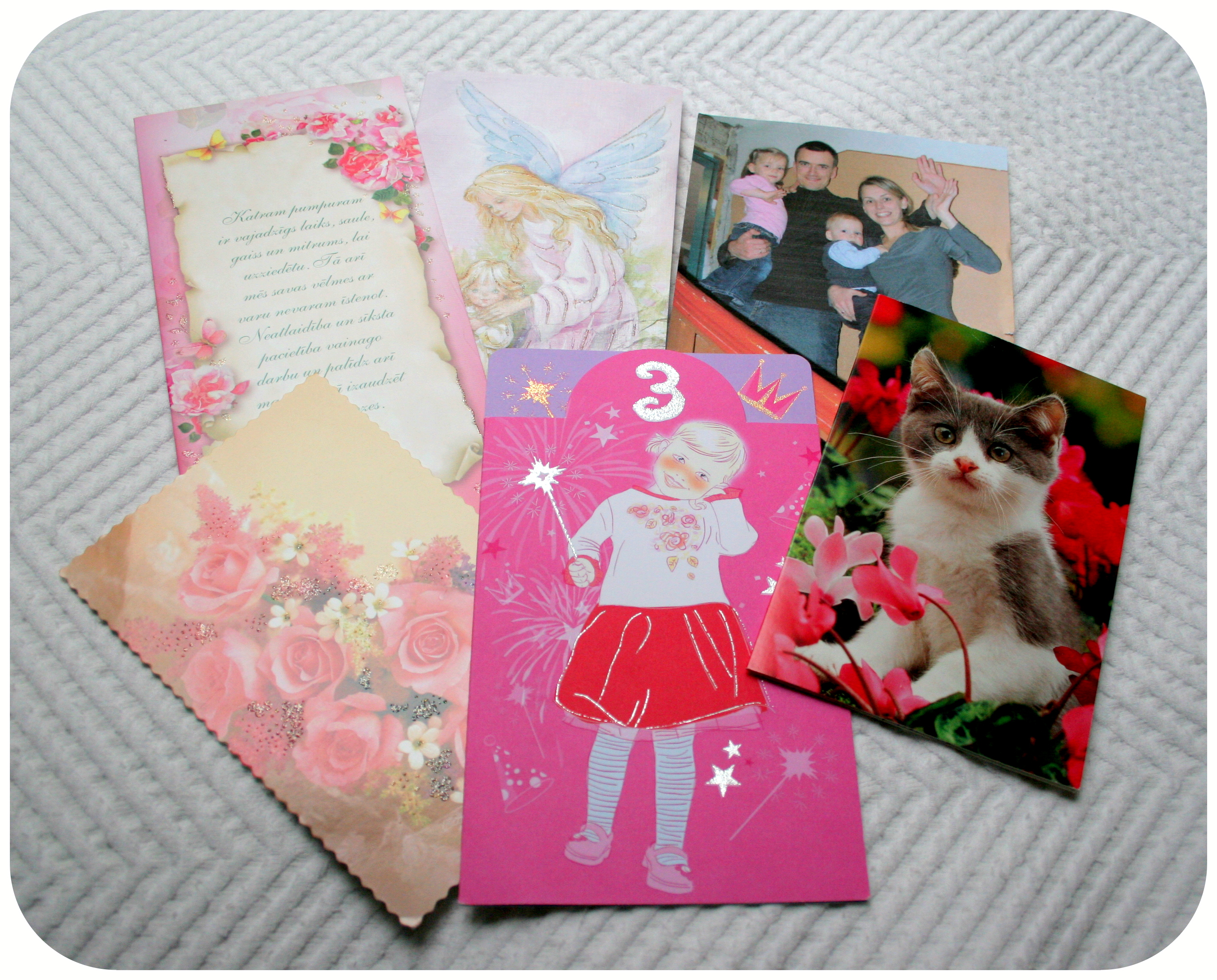 - kartītes no vecāsmammas (manas omammas) un citiem draugiem un radiem uz dažādiem svētkiem;