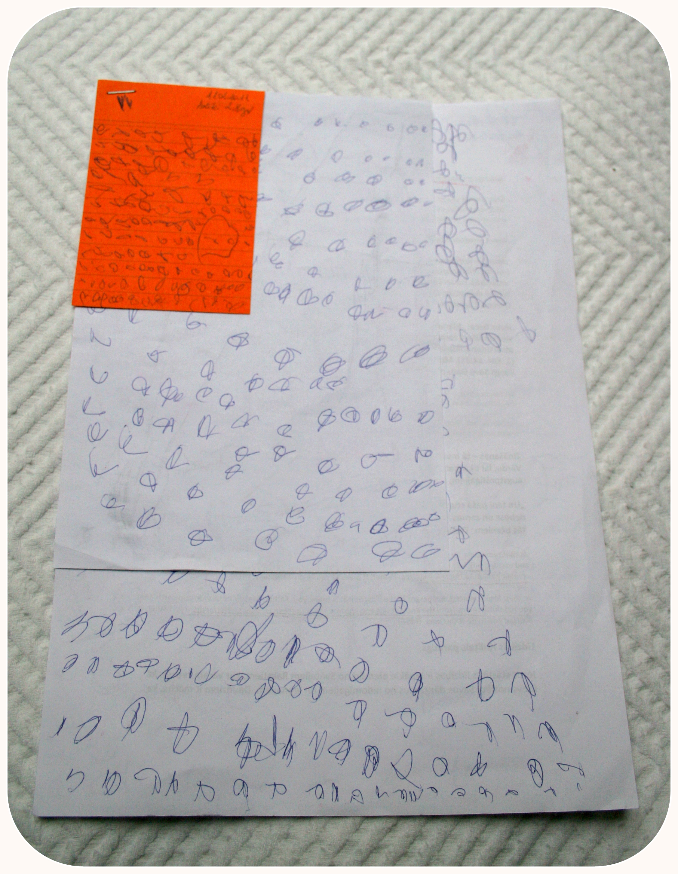 - Adrianas spilgtākie zīmējumi un pirmie pieraksti/vēstules/iepirkumu saraksti;