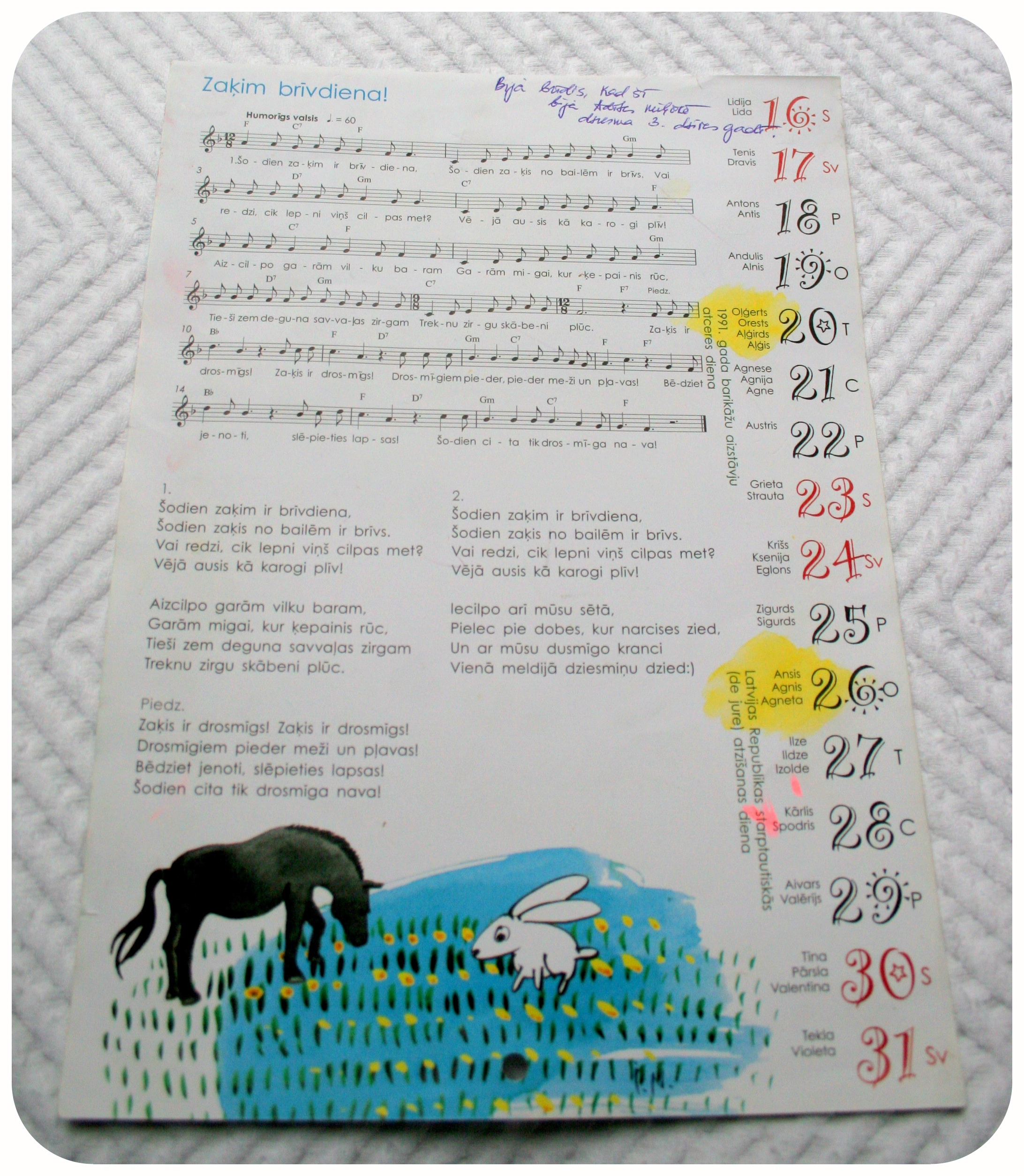 - notis no viņas iecienītākās tā brīža dziesmas “Zaķim šodien ir brīvdiena”.