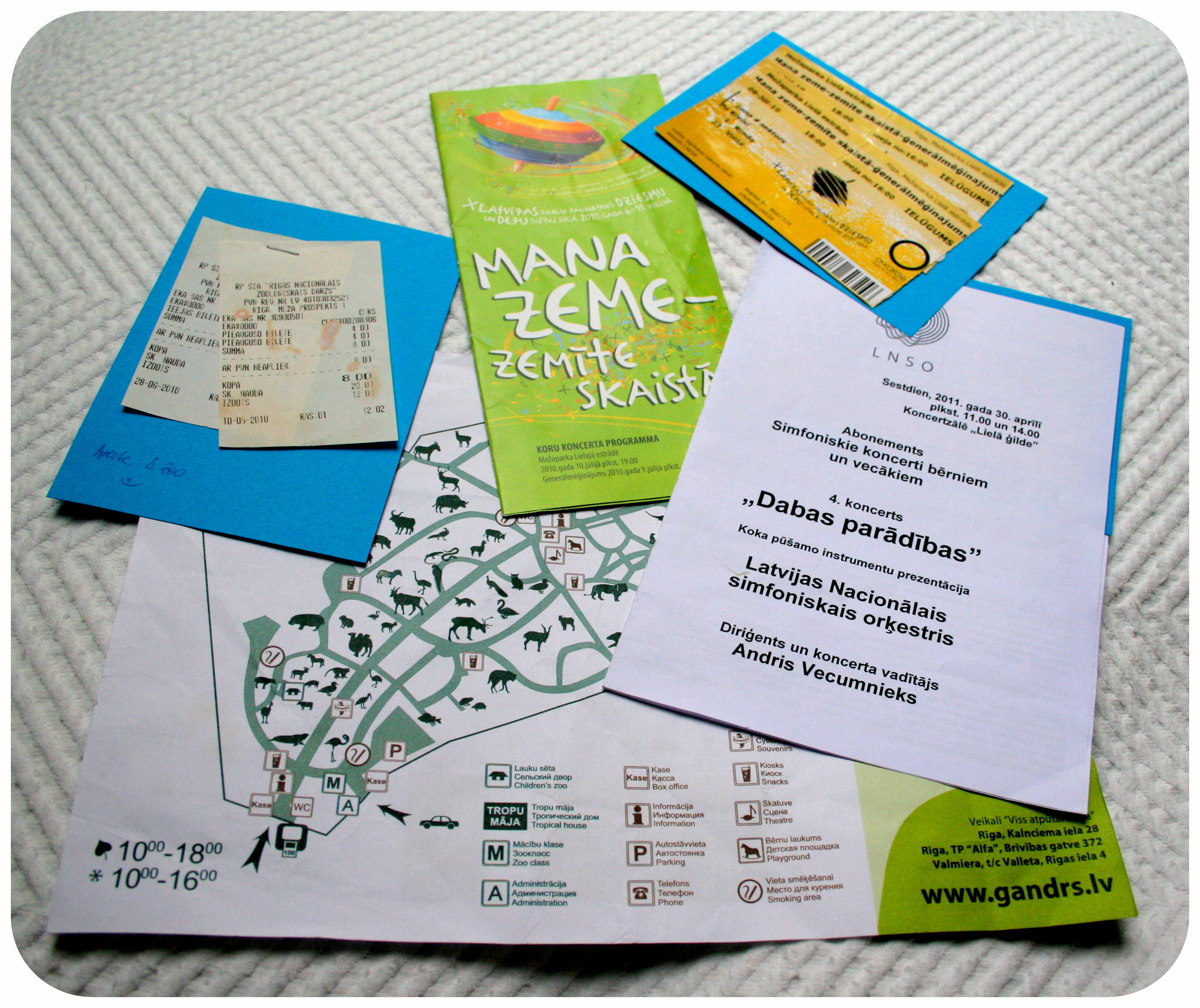 - kādas biļetes no pasākumiem/vietām, kuras viņa apmeklēja pirmo reizi;