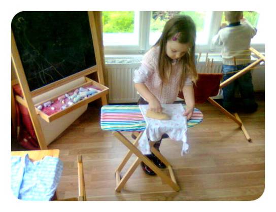 • Adriana svinēja draudzenes Felicitas dz.d. un ciemojās manas draudzenes Montessori kabinetā, kur viņai ļoti patīk (piem., “gludināt” drēbes un mazgāt logus).