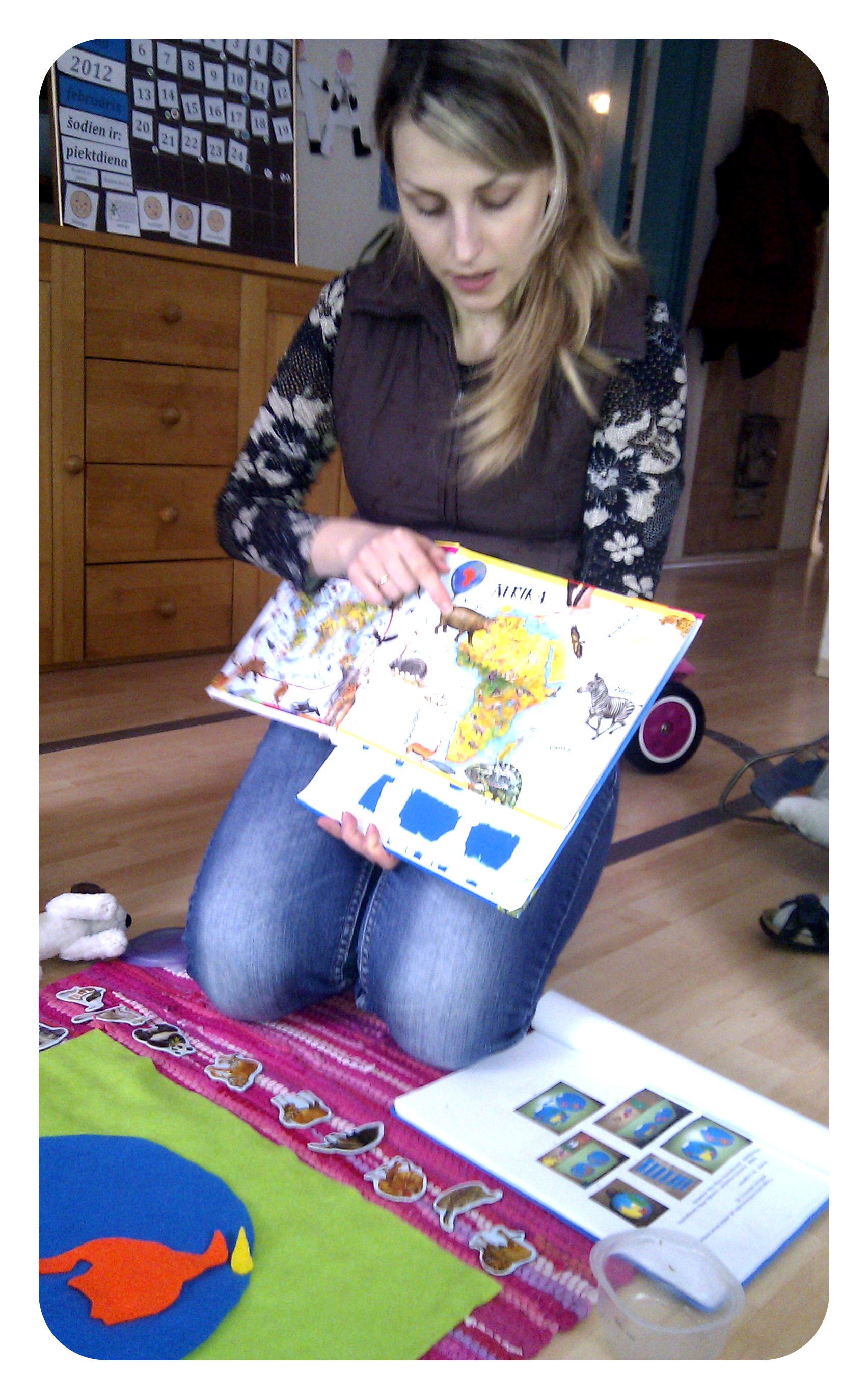 Mums mājās ir Dzīvnieku atlants ar magnētiem, izmantojām arī to. Šķirstījām atlantu un uz katra no kontinentiem uzlikām attiecīgos dzīvniekus.