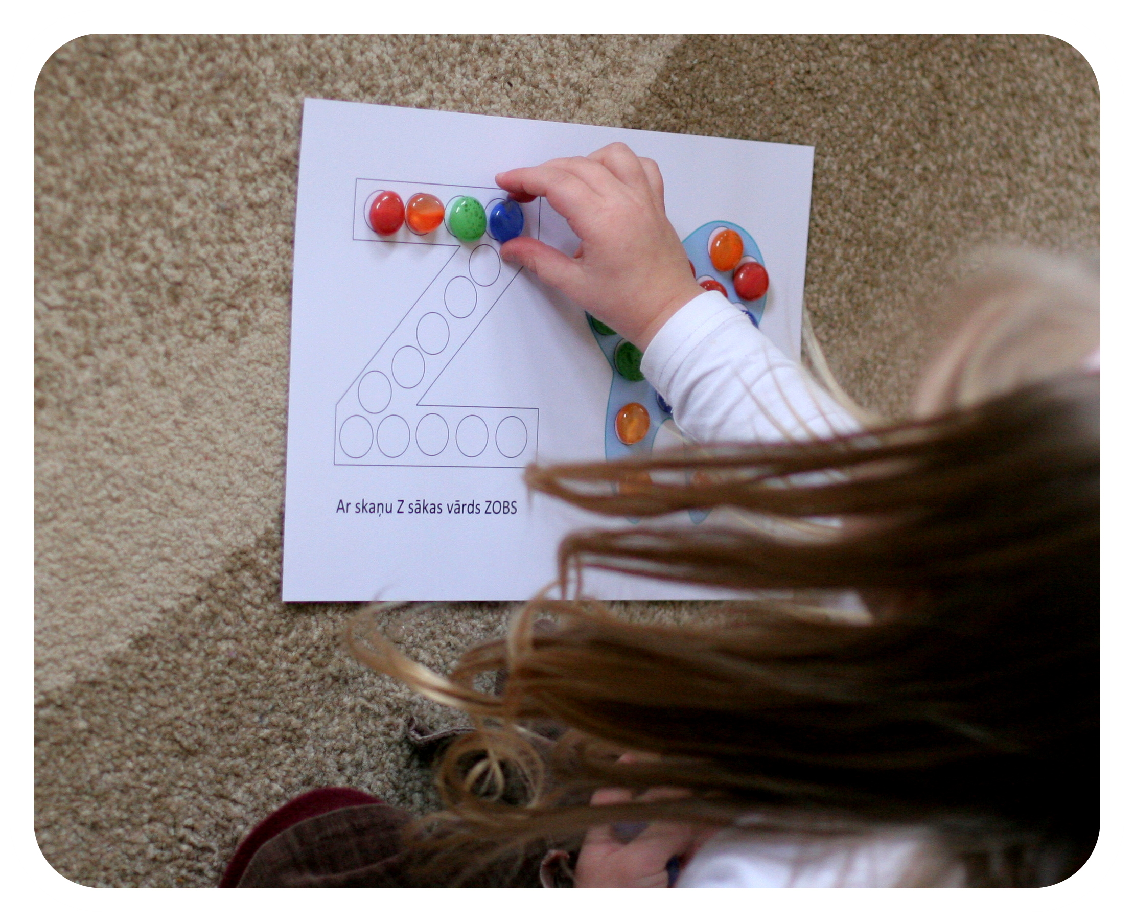 Pavasarī uz vairākām nedēļām devāmies uz laukiem, tāpēc pirms tam Adrianai apjautājos, par kādiem burtiem viņa gribēs vairāk parunāt, kamēr būsim projām no mājām. Viens no izvēlētajiem burtiem bija “Z”. Ar šo burtu mēs darbojāmies aptuveni 2 nedēļas. Uzreiz piemetināšu – šajā ciemošanās reizē laukos man bija vairāk brīvā laika nekā esot ar bērniem Rīgā. Tas bija pavasaris, daba lēnām modās, pusdienas man nebija jāgatavo, tad nu ar bērniem varējām visādi padarboties. Gribēju šo atrunāt, lai Tev nav sajūta, “pa kuru laiku viņa to paspēj!” ;)