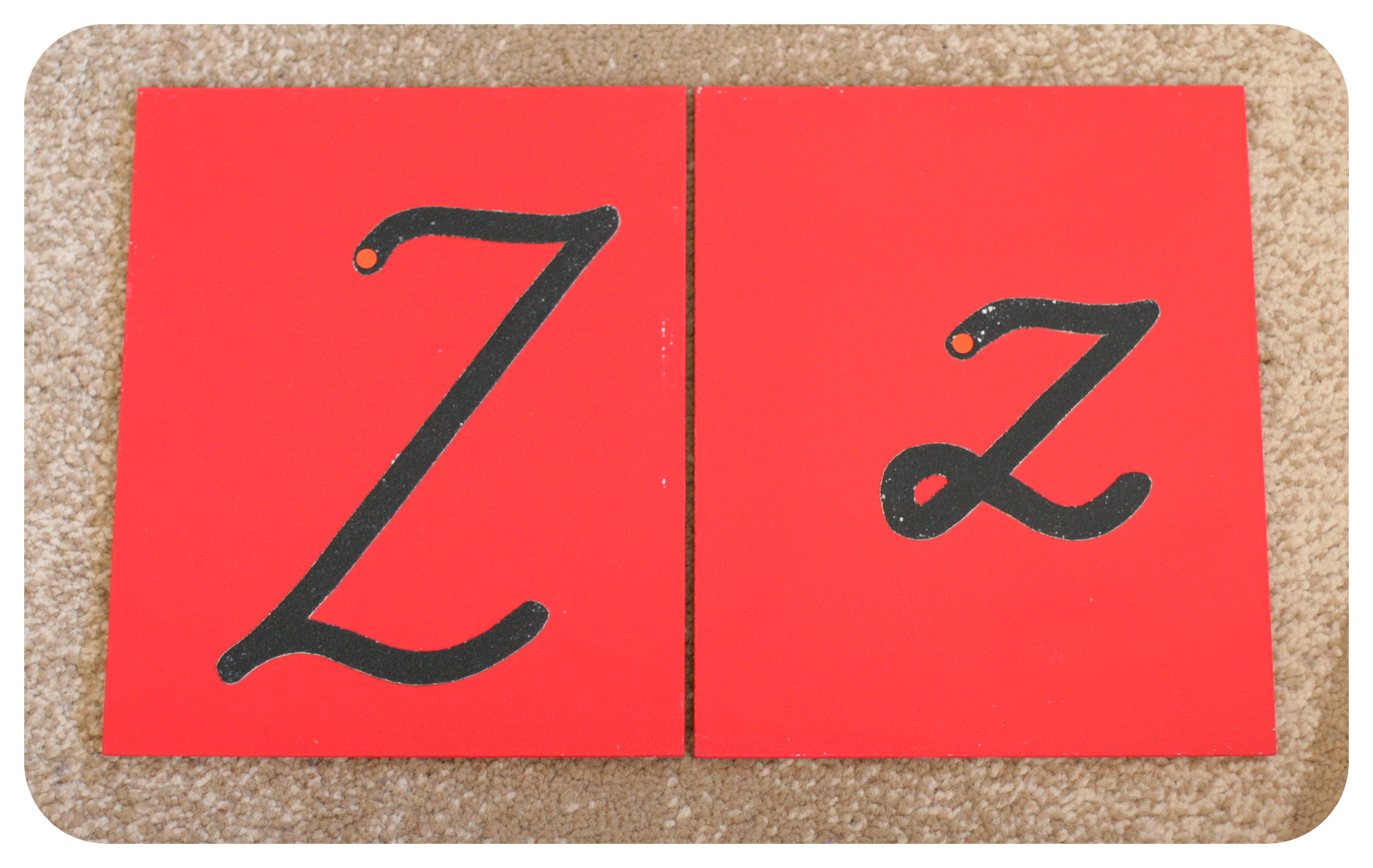 * Smilšpapīra burtu Z (tas ir paštaisīts; bloga ieraksts par smilšpapīra burtiem top manā galvā teju jau gadu ;), liekas, ka drīz būs arī gatavs :)). Sarkanais punktiņš norāda, no kuras vietas bērnam ir jāsāk rakstīt attiecīgais burts.