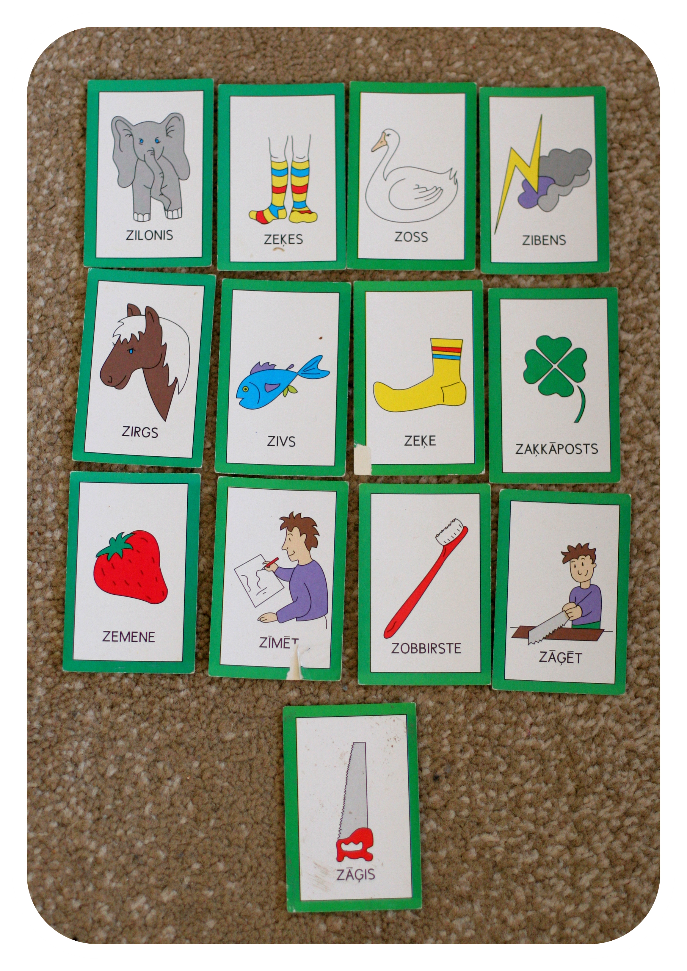 Adrianai tās ļoti patīk. No sākuma mēs kartītes apskatījāmies un pārrunājām, kas uz kartītēm ir attēlots. Vēlāk (kādu citu dienu) mēs sākām uzdot mīklas. Izvilkām vienu no kartītēm un uzdevām mīklu. Bērniem ar mīklu uzdošanu iet interesanti. Adrianai arvien labāk, bet Niklāvam ļoti amizanti, viņš mīklas uzdošanas procesā jau pastāsta, kas uz viņa kartītes ir attēlots. Bet tas arī labi. Attīstām valodu un mācāmies lietas aprakstīt. :)
