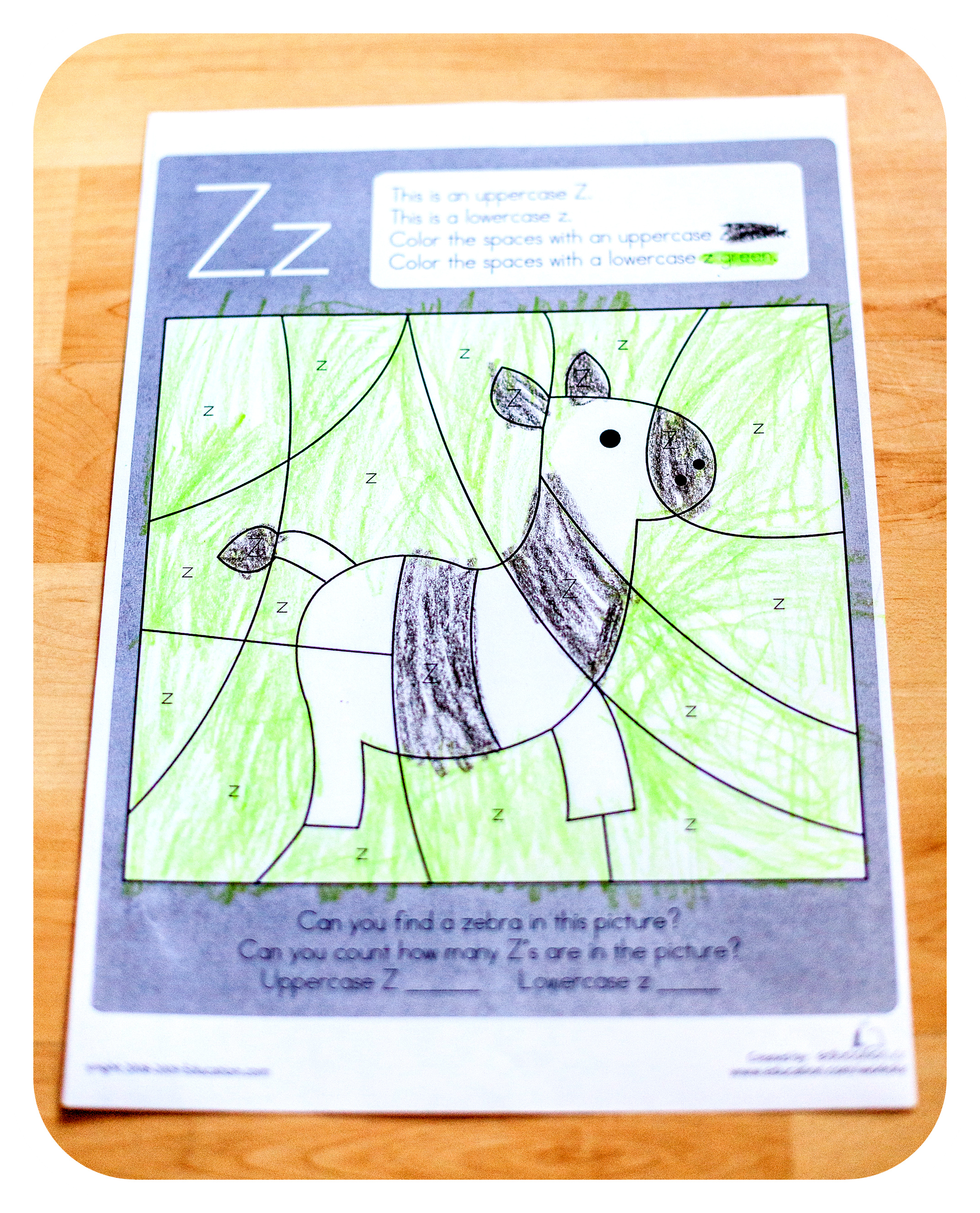 Adrianai patīk darba lapas. Viņai patīk krāsot, vilkt, savienot, … tad nu viņai par godu izdrukāju arī šo burtu Z. Vairs neatceros, kur to dabūju, laikam caur Pinterest. Varbūt šo arī varētu apvilkt ar līmplēvi un tad bērns to varētu izmantot vairākkārt.