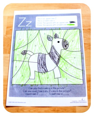 Man pašai simpātisks likās zemāk redzamais uzdevums, kurā lieli Z bija jāizkrāso vienā krāsā un mazie z citā. Darba lapu atradu Education.com