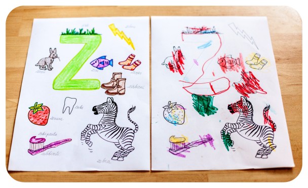 Krāsojām burtu Z, kurš uzzīmēts kā zebra. Pirms tam Adriana jau pamanījās pati šādu Z (domājot par zebru) uzzīmēt.