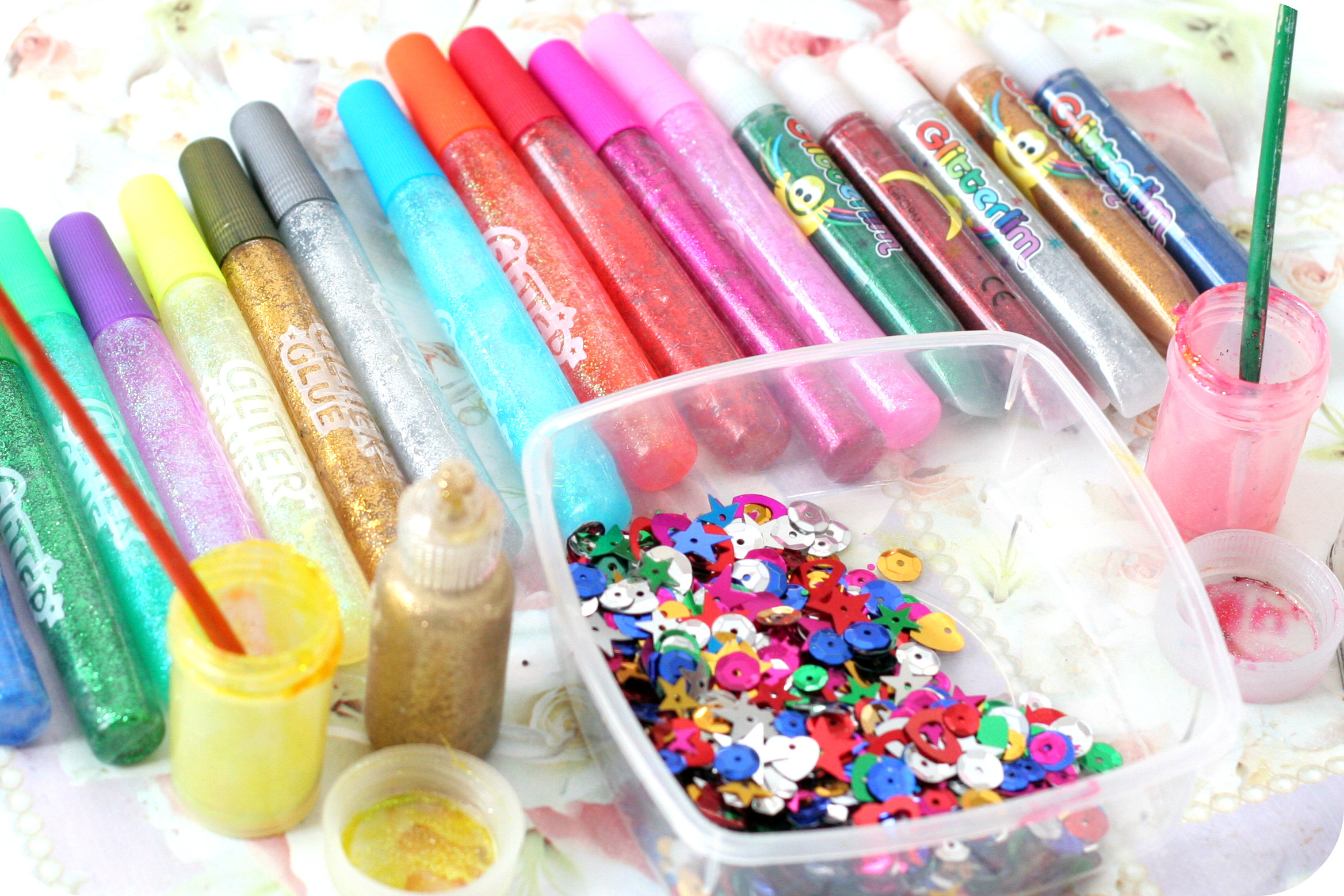 * līme ar spīgulīšiem (glitter glue);