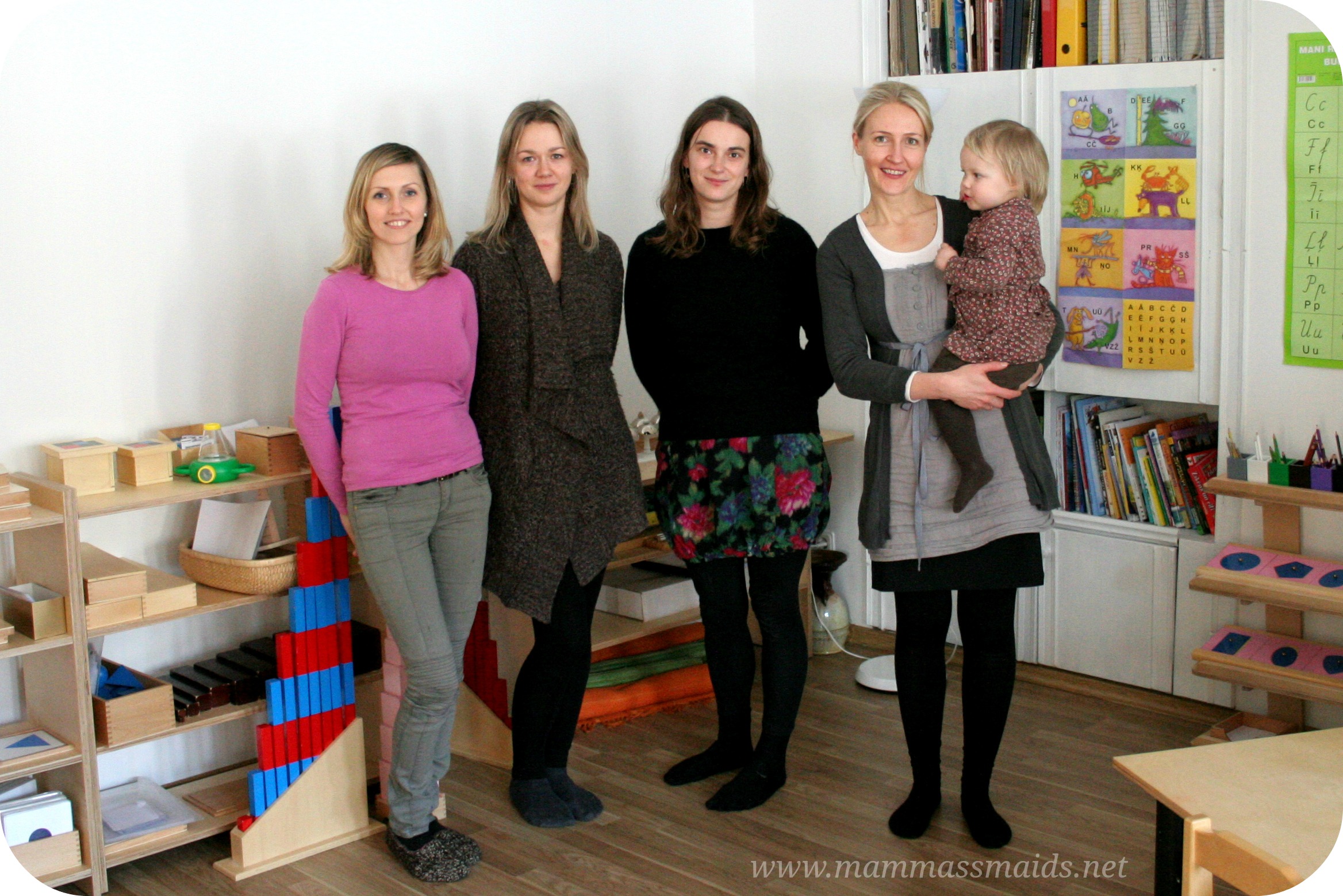 Iepriekšējā gada vasarā kopā ar ģimeni viesojāmies pie vīra māsīcas Kuldīgā. Vakara gaitā Henriete izteica ideju – kā būtu, ja es dalītos zināšanās un pieredzē par Montesori ar viņu un vēl pāris mammām. Šī ideja materializējās un iepriekšējā gada oktobrī bija mūsu pirmā tikšanās. 3 no 4 mammām bija no ārpus Rīgas (Kuldīga, Jūrmala un Jelgavas puse), nodarbības notika apmēram reizi mēnesī un tikšanās ilga vidēji 3 stundas (kādreiz pusstundu ilgāk). Sāku ar 4 mammām un uz trešo nodarbību mums pievienojās arī Diāna.