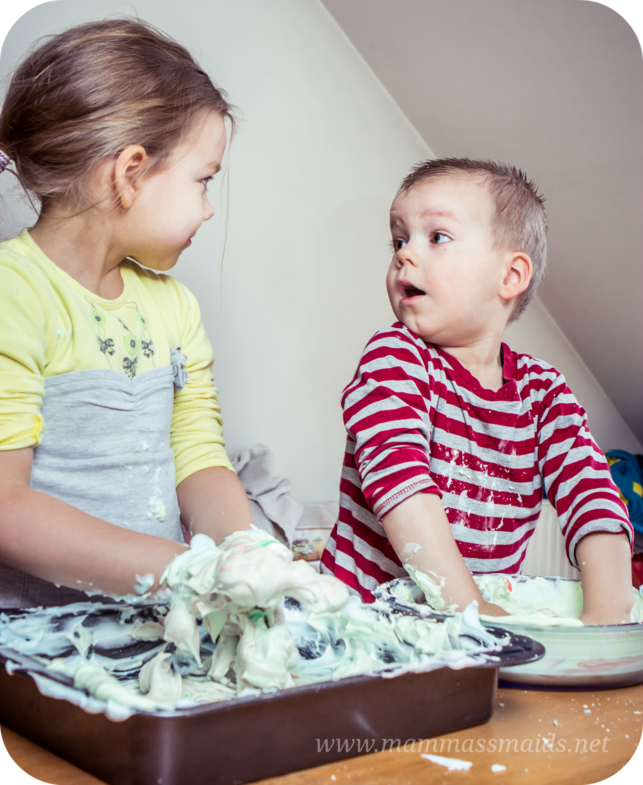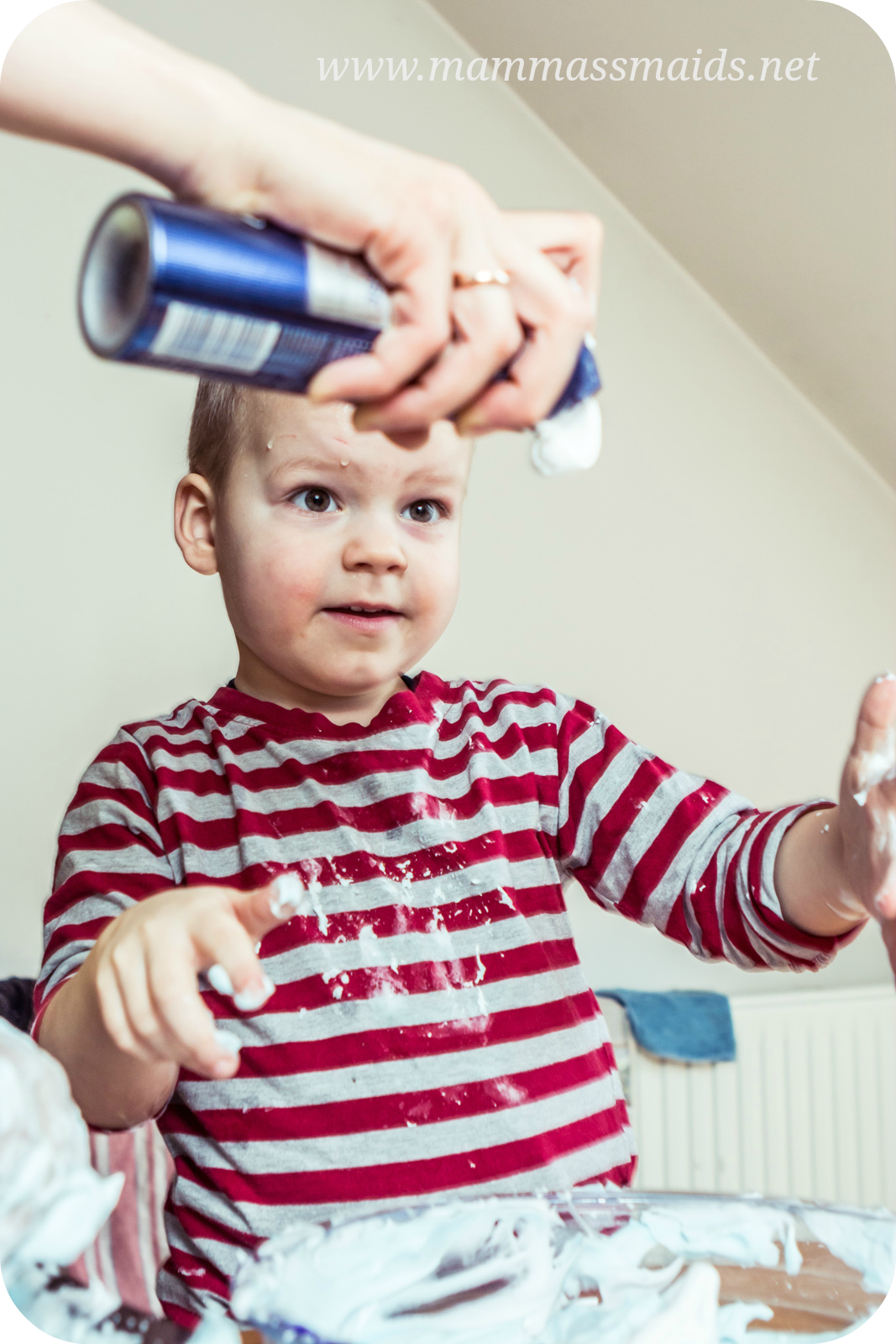 Vairākos blogos biju redzējusi ideju par skūšanās putām kā sajūtu materiālu. Kādu dienu skūšanās putas mums tā vienkārši iekrita rokās (respektīvi, negaidīti uzradās), tāpēc nolēmām izmēģināt, kā bērniem tās patiks. Tad nu dalāmies ar mūsu Putu jeb Parabēnu ballītes bildēm. :)