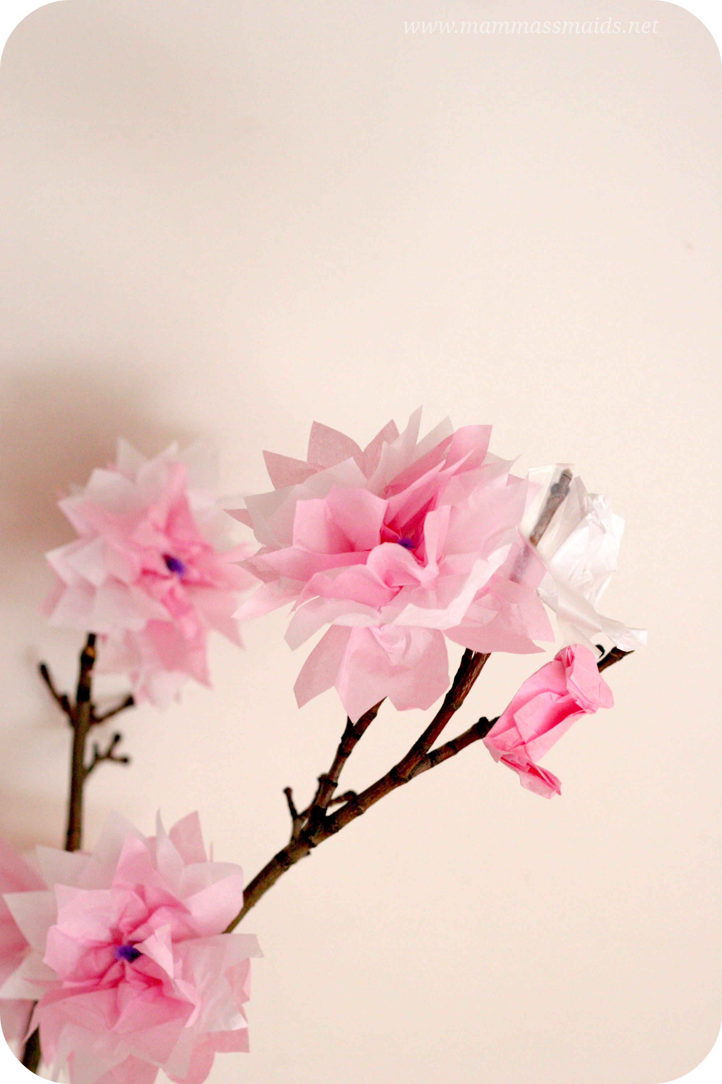 Adriana visas pagatavotās puķes izvēlējās likt matos. Bet Niklāvs izvēlējās puķes taisīt “pa savējam” Apakšējā bildē var redzēt – salocīts zīdpapīrs, kas ar skoču/līmlenti pielīmēts pie zara.