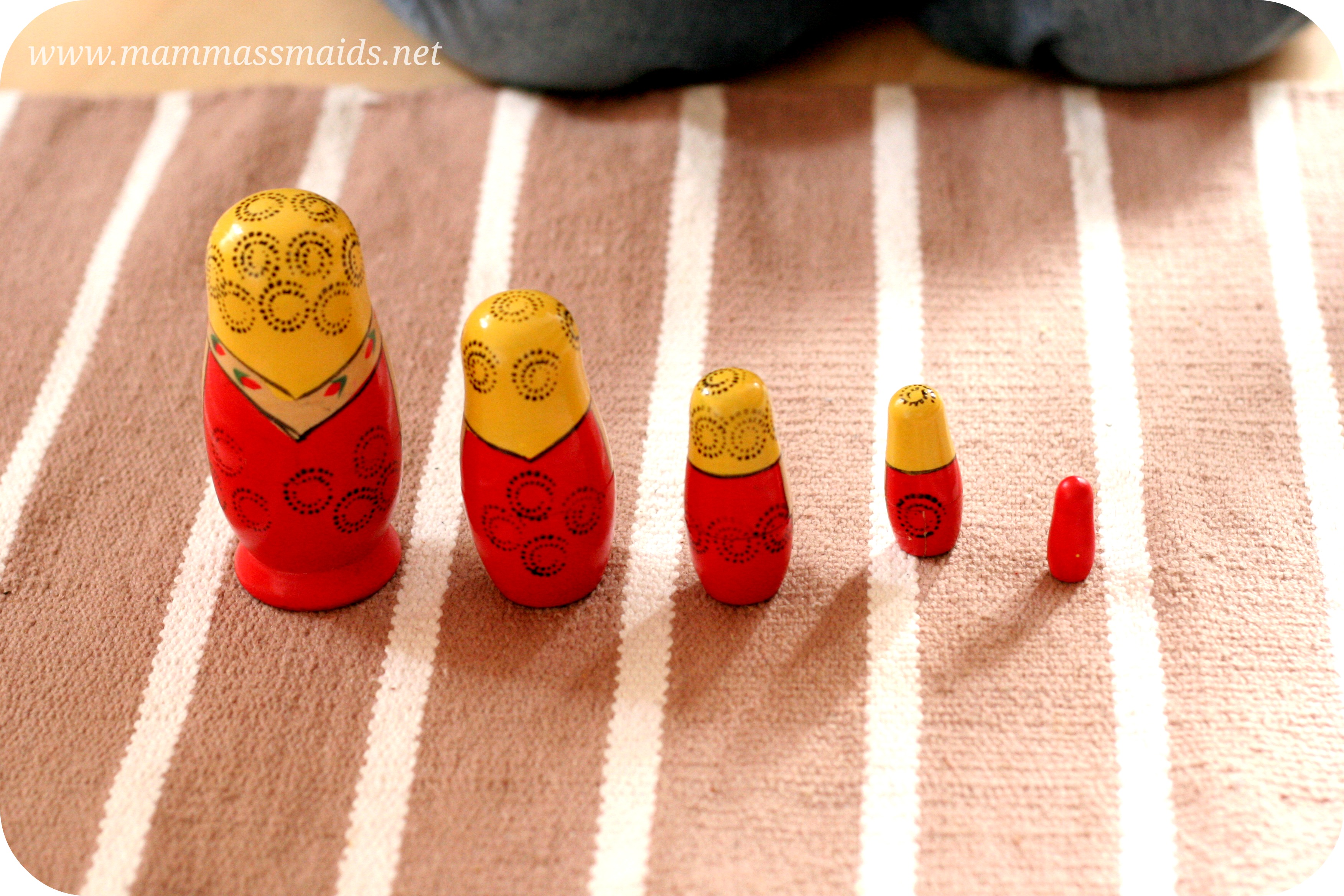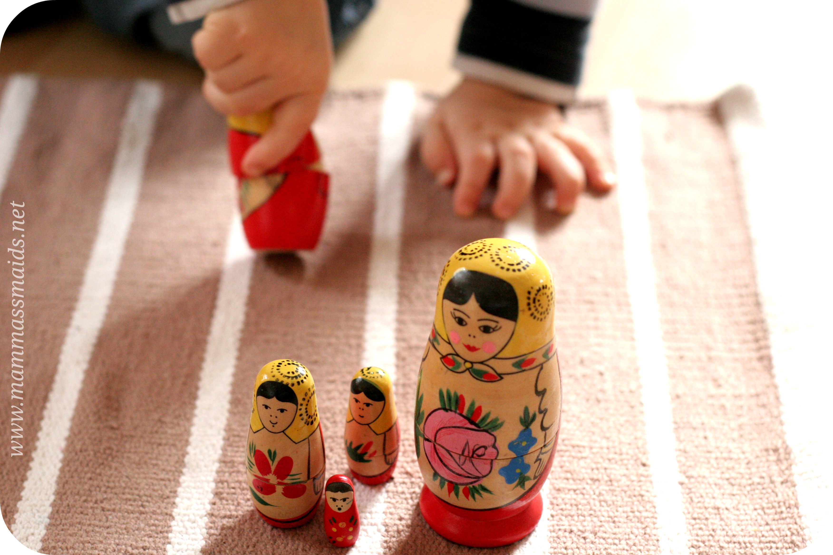 Andrejs turpina darboties – šoreiz ar matrjoškām. Sākumā visas tika atvērtas un par katru no lellītēm Andrejam bija neviltots prieks – kā tas var būt, ka lellītes ir iekšā viena otrai? :)