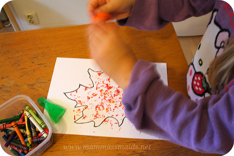 Un šeit es izmēģināju, kas notiek, ja vaska krītiņu skaidiņu ir par daudz. :)