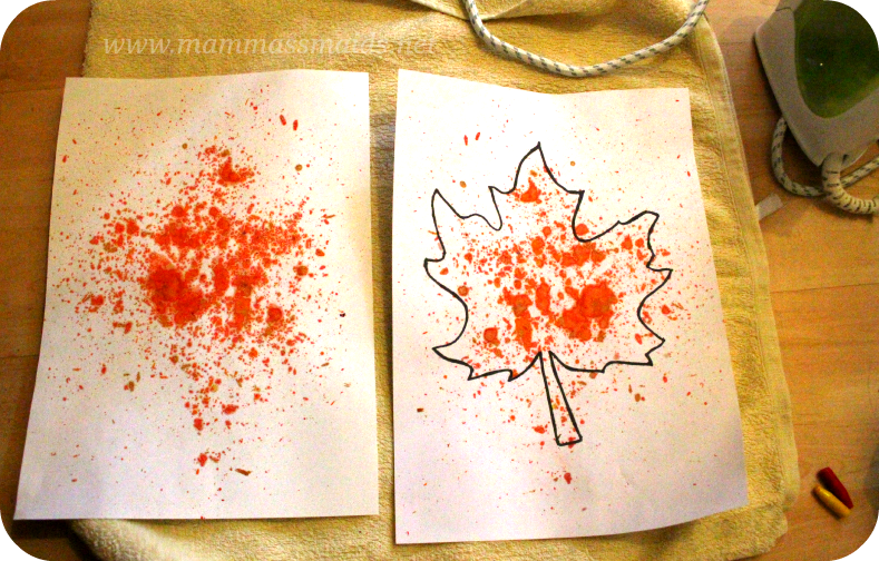 Mani bērni ir priecīgi, ja ļauju viņiem gludināt drēbes (vecāku uzraudzībā). Pirms kāda laika gludināšanas tehnikā izkrāsojām rudens lapas (ideja ņemta no plašajiem interneta resursiem). Tās mums tagad ir rudens sienas dekors.