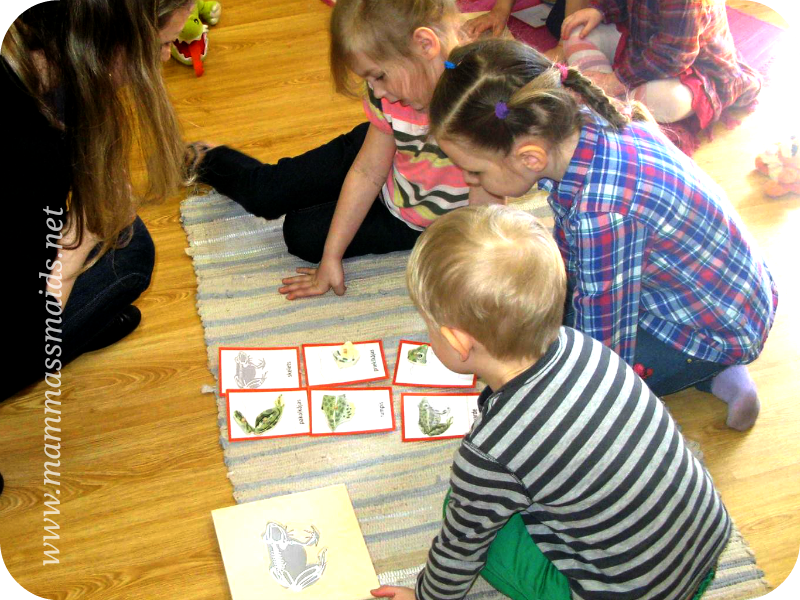 Tad bērni ar vienu no abiniekiem iepazinās mazliet tuvāk, proti, vardi. Kopā ar bērniem noskatījāmies multfilmu par vardes dzīves ciklu.