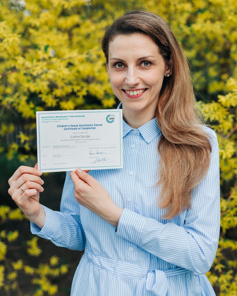 Pirms dalības AMI kursos biju pabeigusi kursus Montesori bērnu mājā darbam ar bērniem vecumā no 3 līdz 6 gadiem un darbam ar skolēniem vecumā no 6 līdz 12 gadiem.