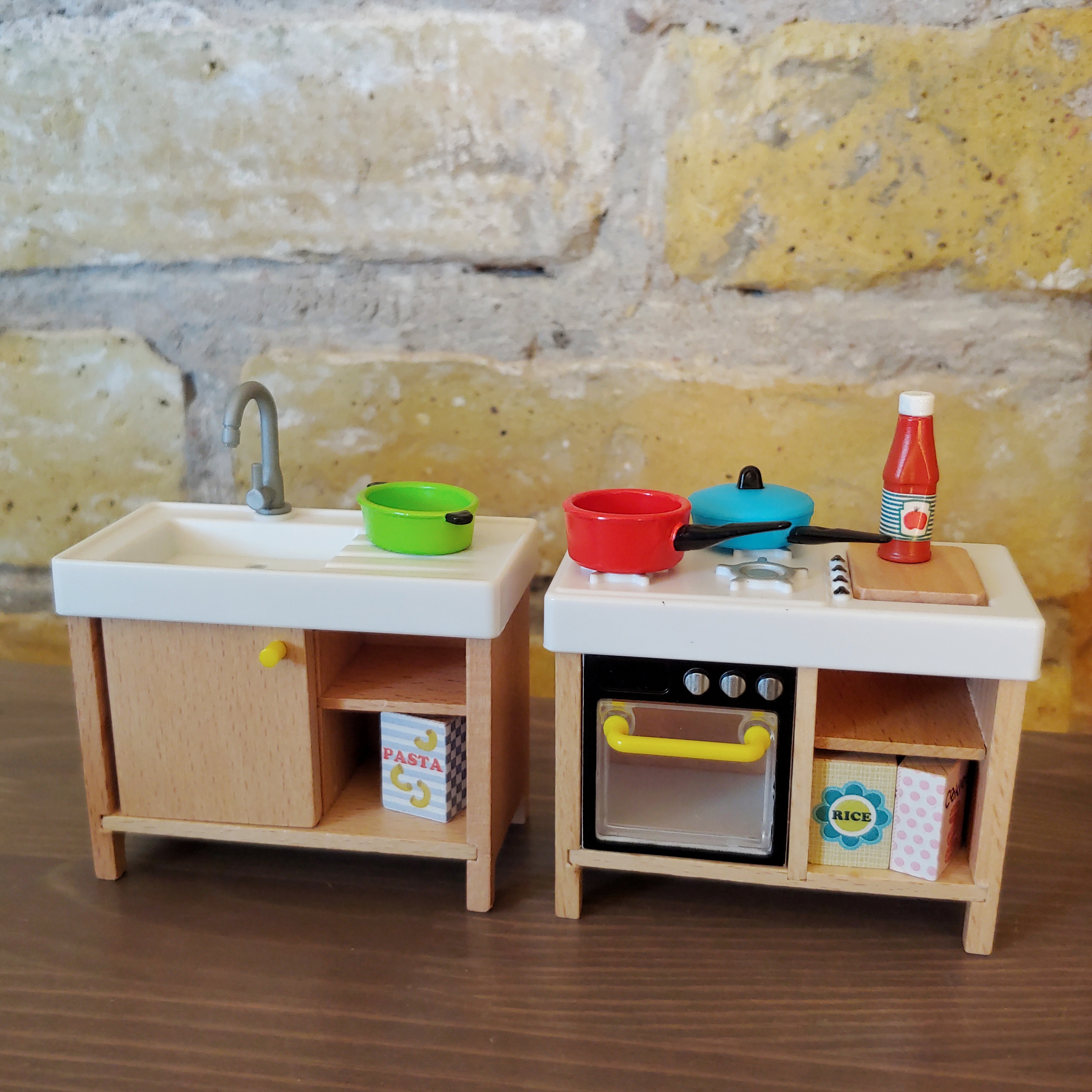 Divi jaunākie bērni – 9gadnieks un 5gadnieks – ar lielu entuziasmu izpakoja spēļu virtuves un ēdamsistabas iekārtu. Mūsu bērniem ļoti patīk šādas mini lietiņas. Šī ir miniatūrvirtuvīte ar maziem trauciņiem, mēbelēm un pārtikas produktiem.