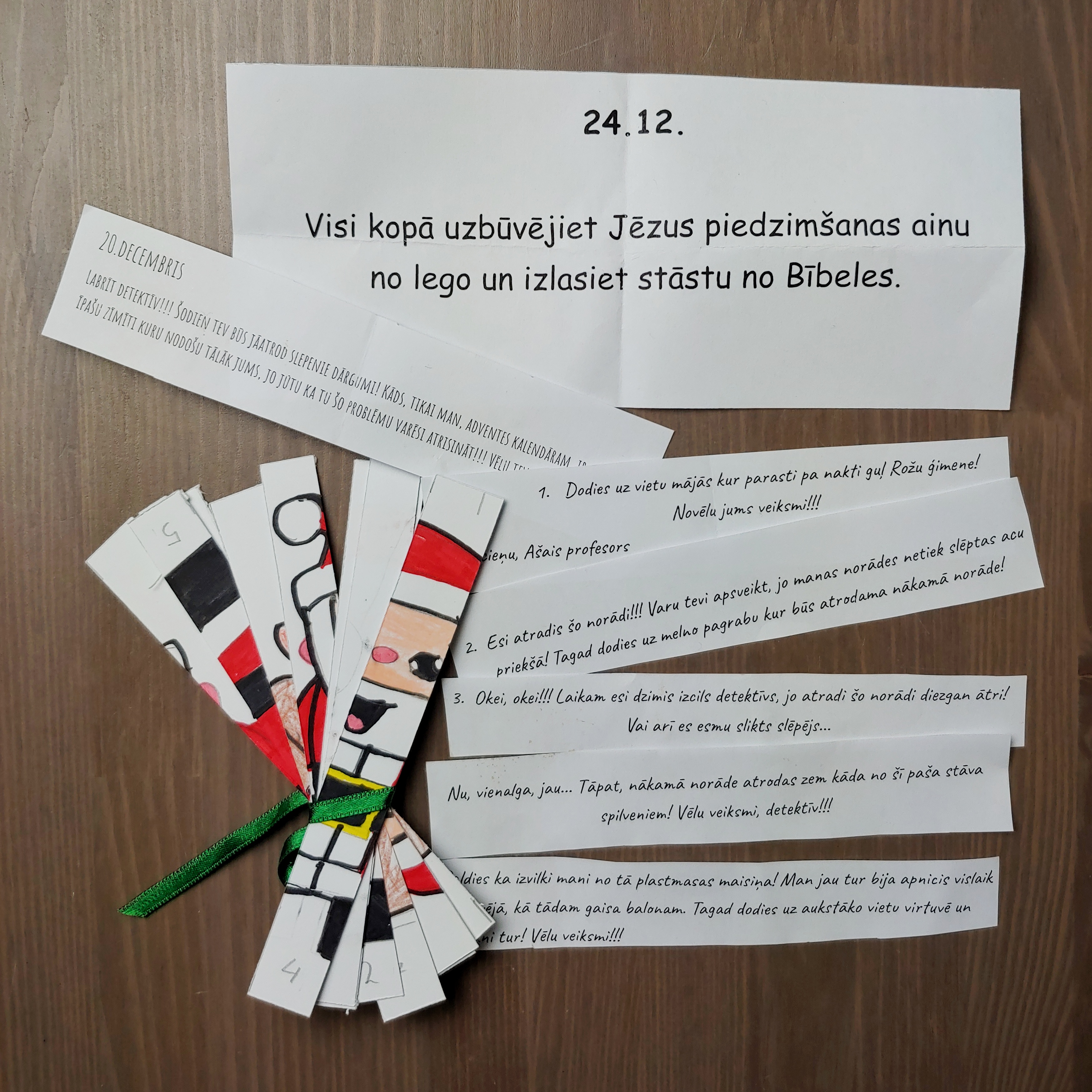 Šogad vecākie bērni (12, 11 un 9 gadus veci) radīja adventes kalendāru jaunākajam brālim (5gadniekam). Ļoti priecājos, ka viņi bija atsaucīgi šai idejai! Gatavošanās procesā bija iekļauta gan informācijas meklēšana un citu kalendāru aplūkošana, tik zīmēts un līmēts, tika veidoti iepirkumu saraksti, kas tētim pilsētā jāsagādā, lielā māsa palīdzēja vidējam brālim ar garumzīmju salikšanu tekstos u.c. komandas saliedēšanas aktivitātes. 😅