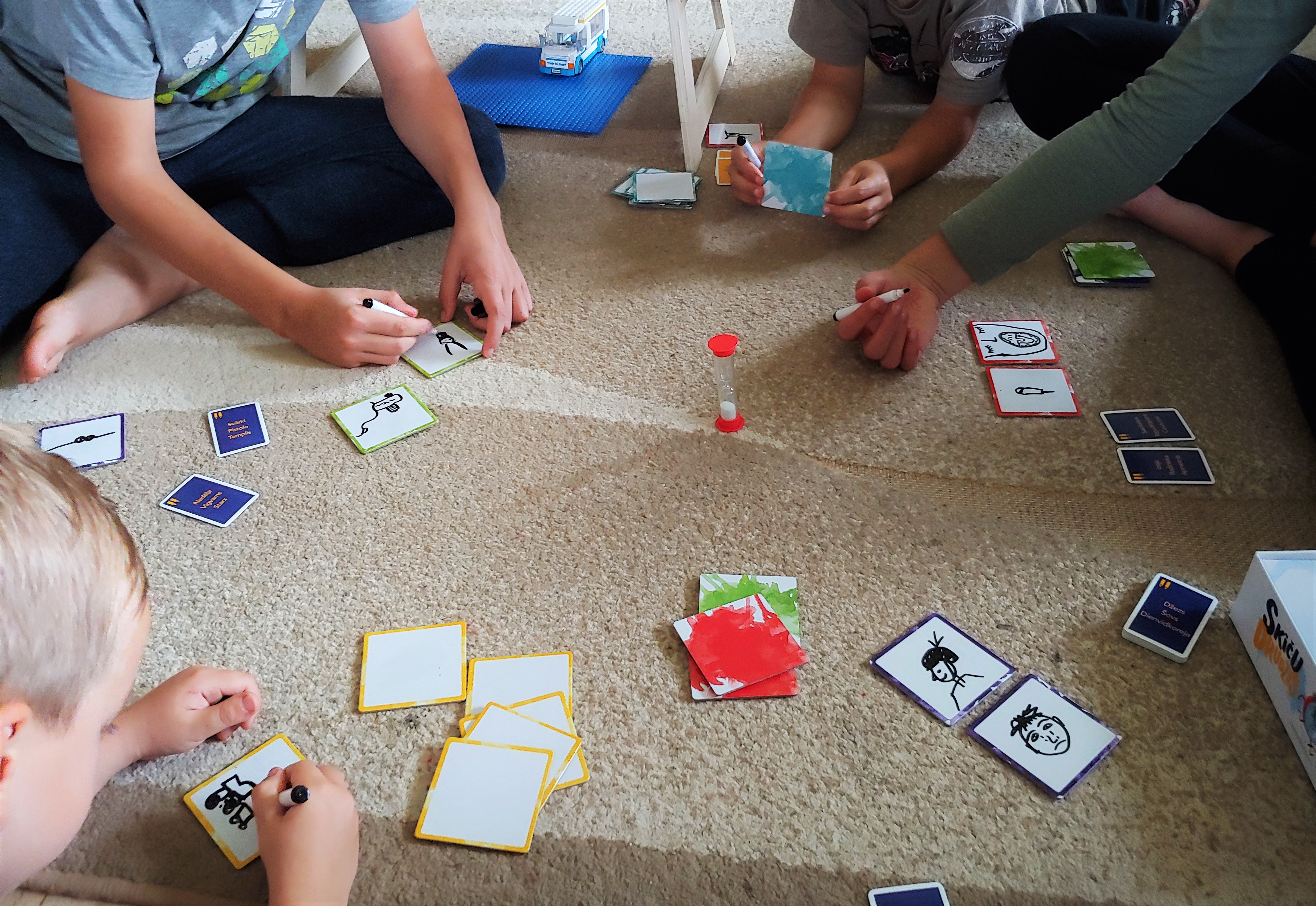 “Skiču drudzis” ietver zīmēšanu un spēju ar zīmējuma palīdzību skaidri nokomunicēt konkrētus vārdus, piem., sala, vasks, auss, vīnoga, dzirde, logs. Sarežģītāks līmenis būtu uzzīmēt šādus vārdus: Ņujorka, mala, uniforma, līmenis, panda, kārts. Pamēģini tagad iedomāties, kā tu varētu šos vārdus uzzīmēt. Mērķis ir attēlot lietas uz zīmēšanas tāfelītēm tā, lai pārējiem spēles dalībniekiem izdotos tos atšifrēt/atpazīt. Varētu teikt – līdzīgi kā spēlē “Mēmais šovs”, tikai ar zīmēšanu. Visu gan sarežģī tas, ka tev pēc iespējas vairāk vārdu jāuzzīmē 1 minūtē. Bet labā ziņa – ja ar pirmo raundu neizdodas, tad vēl ir 2 raundi, kuru laikā vari uzlabot savu zīmējumu vai to nodzēst un pārzīmēt.