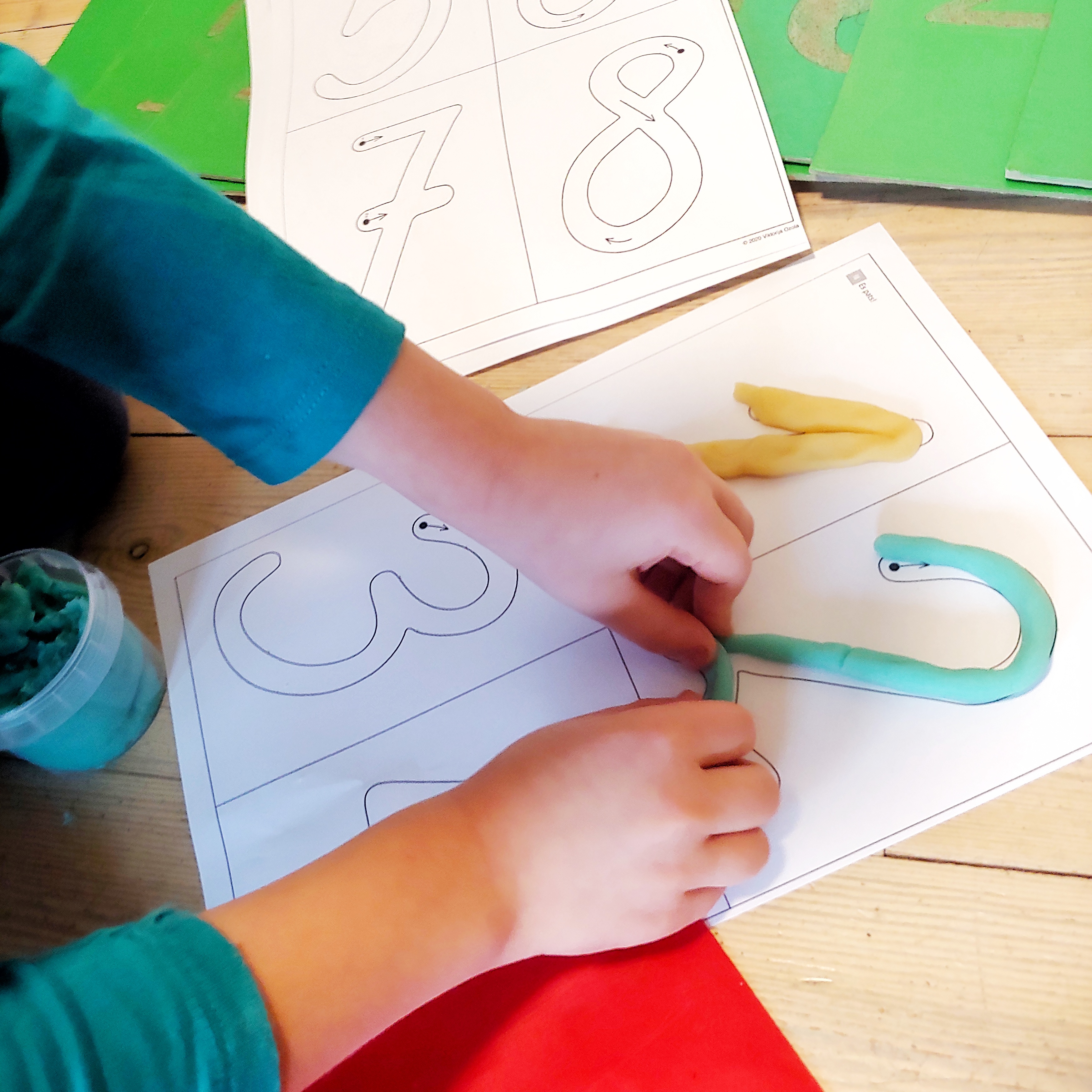 Izveido bumbiņu, tad “čūskiņu” un aizpilda ciparu.