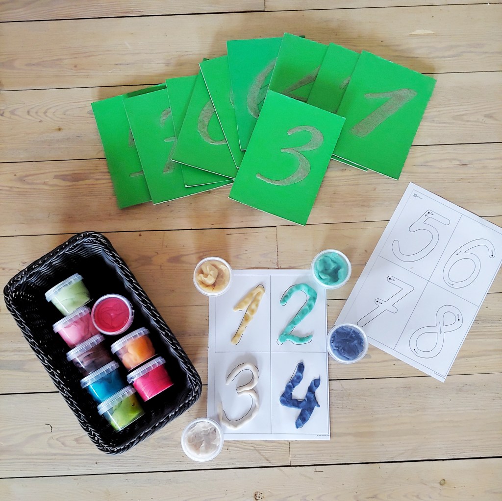 Kad satiekas Es Pats varavīksnes cipari, MĪCI plastilīns un manis pašas gatavotie smilšu cipari, tad ir jautra darbošanās, nostiprinot ciparu simbolu rakstību un izpratni par kvantitāti.