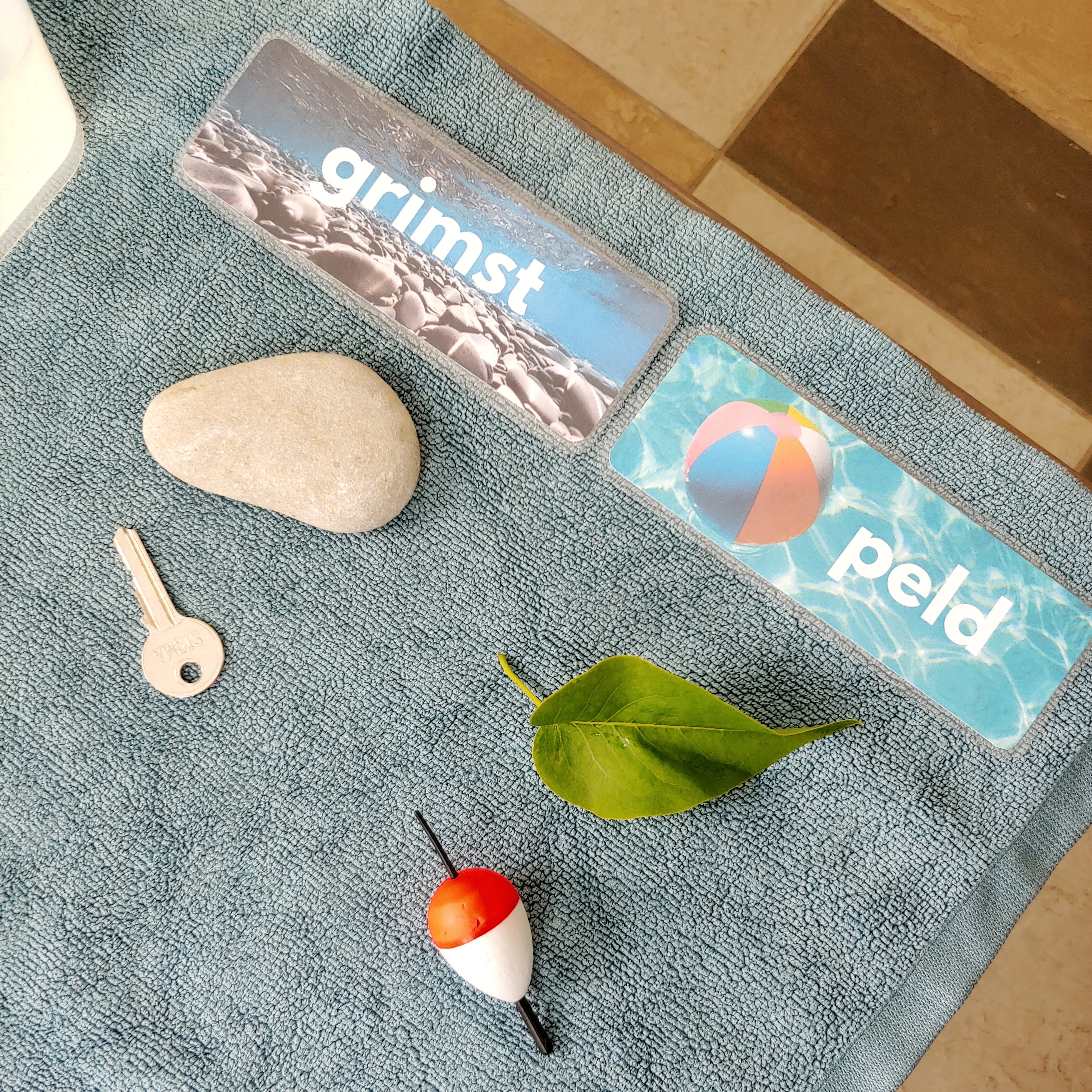 Parādi bērnam uzrakstus “peld” un “grimst” un saki, ka šodien uztaisīsiet eksperimentu un vērosiet, kuri no priekšmetiem peldēs un, kuri grims ūdenī. Priekšmetus arī šķirosiet.